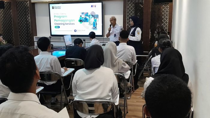 Tangerangplus.com  — Untuk memastikan standar kebersihan dan pelayanan prima di area kerja, KAI Services membekali 27 peserta magang dengan pelatihan intensif cleaning service. Program ini dilaksanakan di Kantor Pusat KAI Services mulai 26–30 Agustus 2025 sebelum peserta ditempatkan di berbagai titik lokasi kerja.